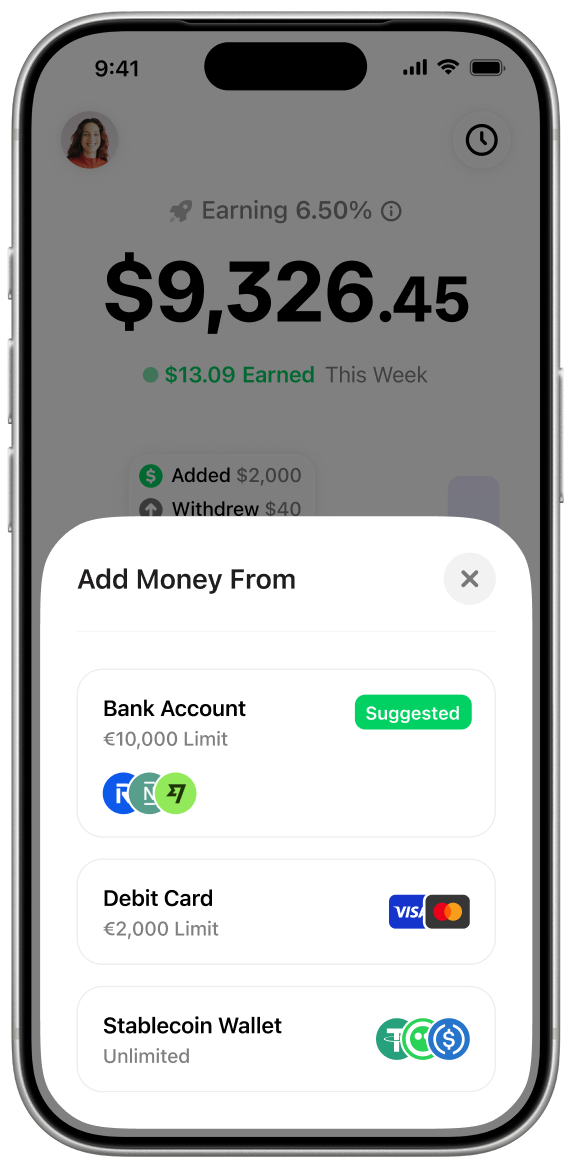 Earn up to 6.50% on your stablecoins with industry-leading interest rates and balance protection up to $1M.